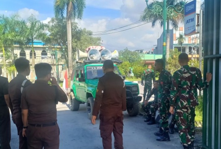 DINAMIKA SULTRA.COM, KENDARI – Sebanyak 30 prajurit Tentara Nasional Indonesia (TNI) Angkatan Darat (AD) dikerahkan untuk menjaga Kejaksaan Tinggi (Kejati) Sulawesi Tenggara (Sultra).