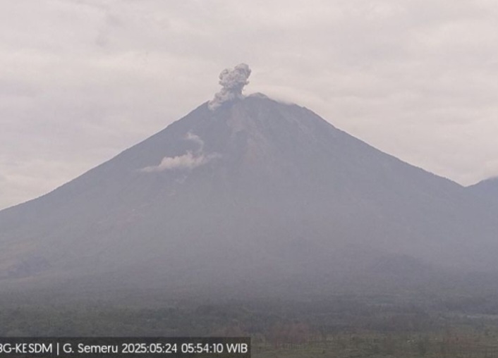 Gunung tertinggi di Pulau Jawa itu kembali erupsi pada pukul 08.50 WIB dengan tinggi kolom letusan teramati sekitar 600 meter di atas puncak atau 4.276 mdpl.