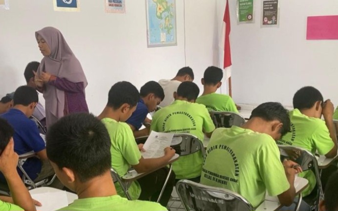 DINAMIKA SULTRA.COM, KENDARI – Lembaga Pembinaan Khusus Anak atau LPKA Kelas II Kendari menggelar ujian pendidikan kesetaraan paket A, B, dan paket C, untuk Anak Didik Pemasyarakatan di LPKA Kendari, Provinsi Sulawesi Tenggara (Sultra).