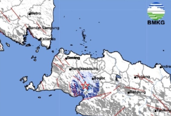 Koordinat gempa berada pada 6.76 lintang selatan, 106.57 bujur timur, 25 kilometer timur laut Sukabumi, Jawa Barat, dengan kedalaman 10 kilometer.