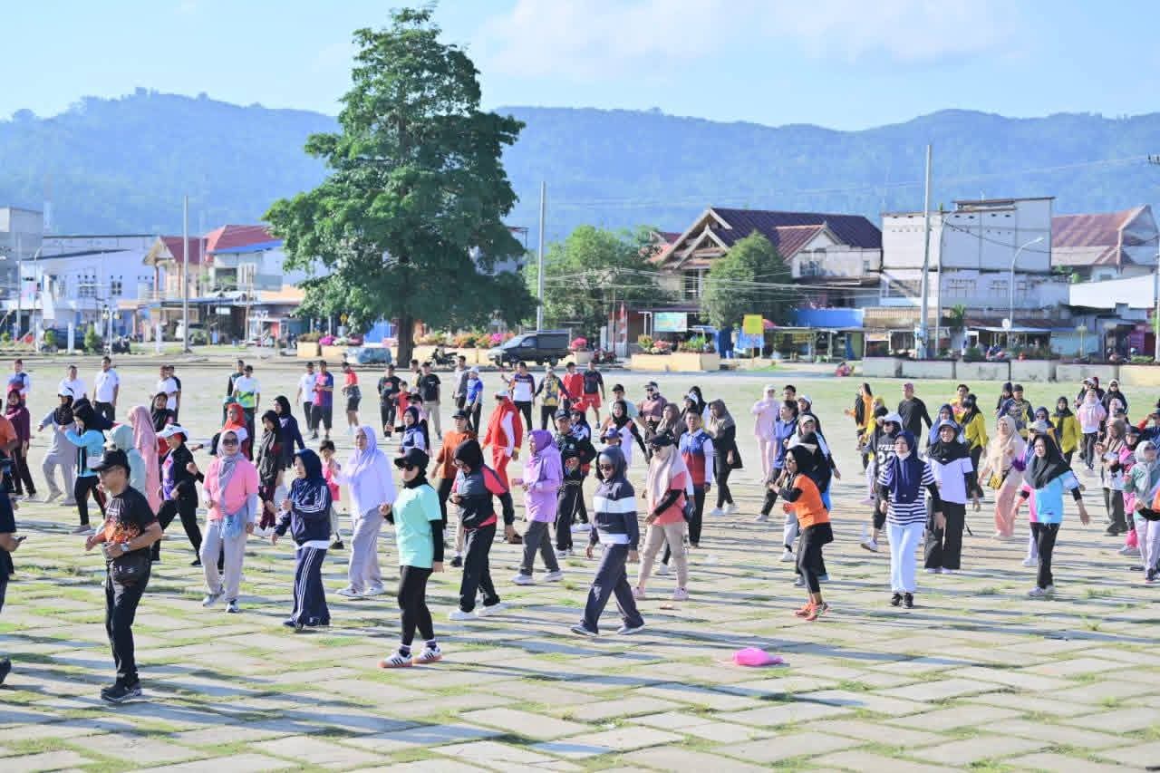 Kegiatan tersebut diikuti jajaran pemerintah daerah dan masyarakat setempat melalui kegiatan jalan santai dan senam bersama, Minggu pagi (5/10/2025)