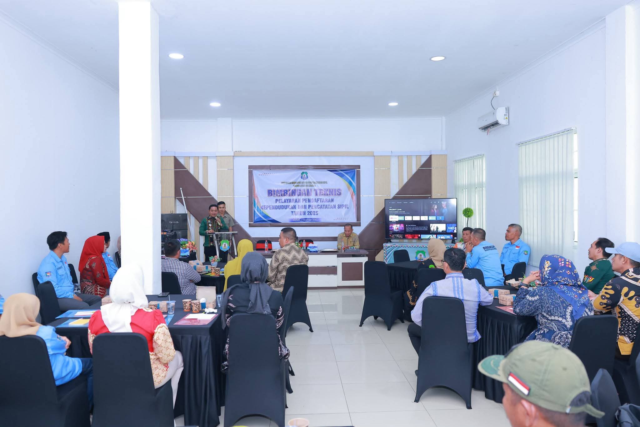 Kegiatan tersebut digelar untuk memperkuat kapasitas aparatur sekaligus memastikan pelayanan kependudukan berjalan lebih tertib, akurat, dan sejalan dengan sistem digital yang terus berkembang.